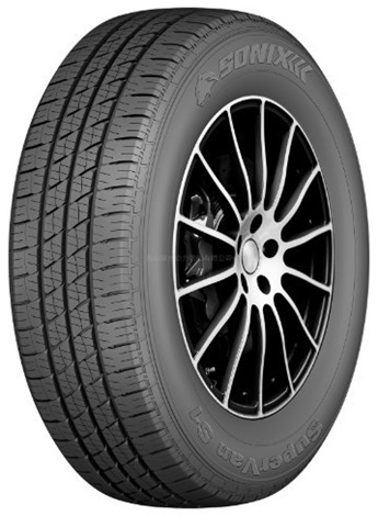 Sonix Supervan S1 – коммерческая шина для легкого грузового транспорта, которая относится к экономклассу. Несмотря на это, модель демонстрирует длительность эксплуатационного периода, стабильность ездовых характеристик при различных скоростных режимах. Строение протектора представлено двумя центральными ребрами, а также широкими плечевыми зонами. В совокупности они формируют большое контактное пятно, способствующее равномерности распределения нагрузки. Тем самым снижается износ только отдельных участков и сохраняется эффективность рабочих характеристик. Особенностью покрышки выступает обилие зацепных граней, которые сформированы многочисленными канавок и насечек. Благодаря им была достигнута устойчивость поведения на мокром асфальте, а также сведен к минимуму риск гидропленнинга. Два центральных ребра обеспечивают уверенное управление и маневренность. А широкие плечевые зоны стабилизируют транспорт при выполнении поворотов и разворотов. В основе покрышки находится усиленный каркас, имеющий многослойную структуру. За счет этого сведена к минимуму деформация под нагрузкой и увеличен срок ходимости. Достаточно толстый протекторный слой способствует защите от механических повреждений